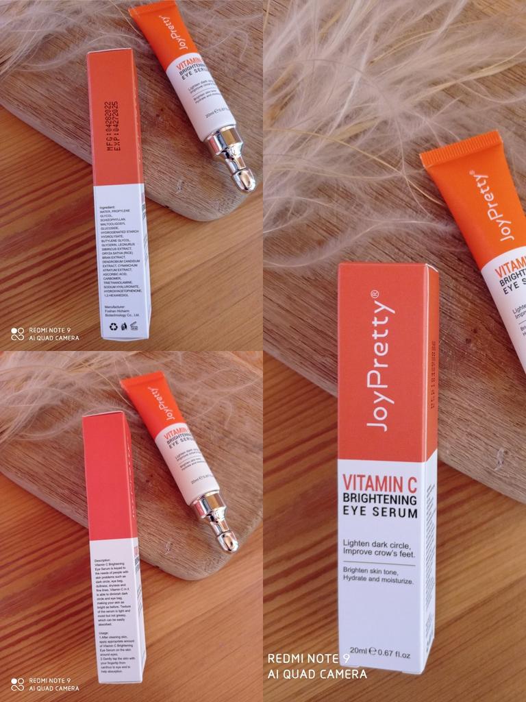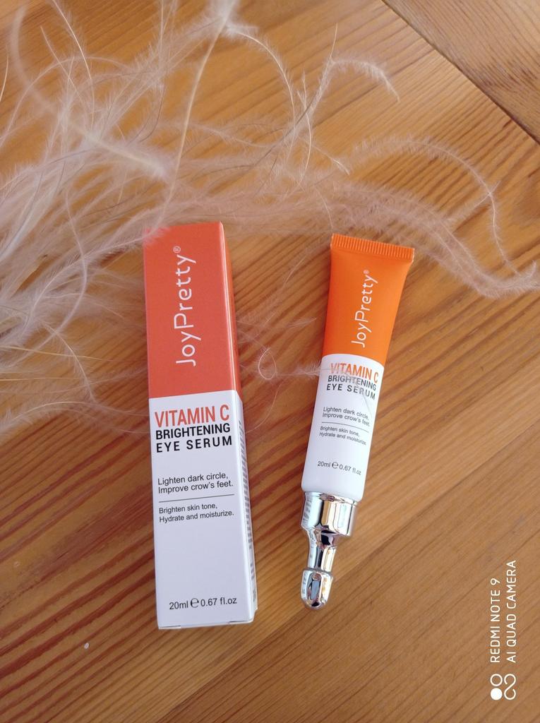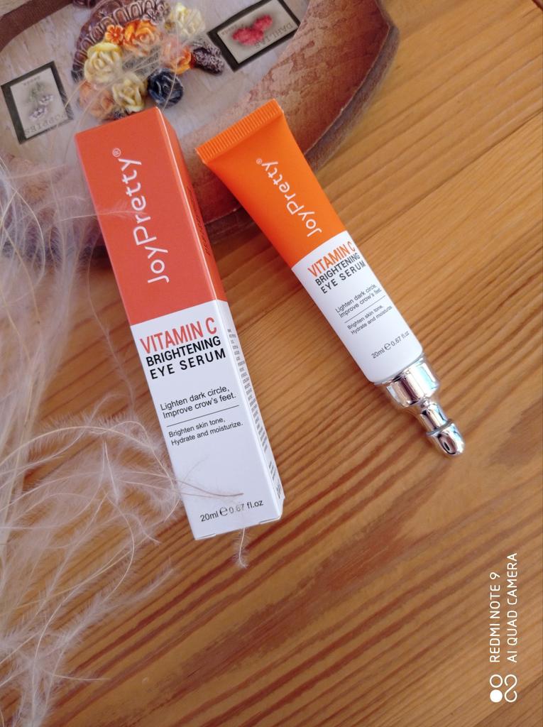 Осветляющий серум для кожи вокруг глаз с витамином С от JoyPretty Серум — это высоконцентрированная сыворотка для интенсивного ухода за кожей лица. Содержит бóльшую массовую долю биоактивных компонентов в составе и предназначен для увлажнения, устранение жирности, сужения пор, улучшения тургора и осветления пигментации. Крем в стандартной тубе массой 20 грамм с узким носиком для точечного нанесения. Он очень воздушный! Серум вроде выглядит как крем, но он настолько лёгкий, что очень быстро впитывается, как гелевые кремы, не оставляет ощущение плёнки на лице. Кожа под глазами у меня сухая и тонкая, крем хорошо осветляет и увлажняет. Витамин С по природе является антиоксидантом с омолаживающим действием, за счёт этого разглаживаются мелкие морщины и кожа становится упругой. Аллергии на данный крем не было. Консистенция белого цвета. Я думала будет сильный запах цитрусовых, но нет. Оказалось лёгкая нотка цитруса и нежного аромата, в общем запах крема ненавязчивый и очень тонкий. Наношу я его утром после умывания. Это отличная основа под макияж, так как быстро впитывается. Срок годности до 16.06.2028 года. Рекомендую попробовать! Личный промокод на скидку 5% на любые товары joom: Z0L5QEMQK3. Приглашаю в мой телеграм-канал followmekanal.