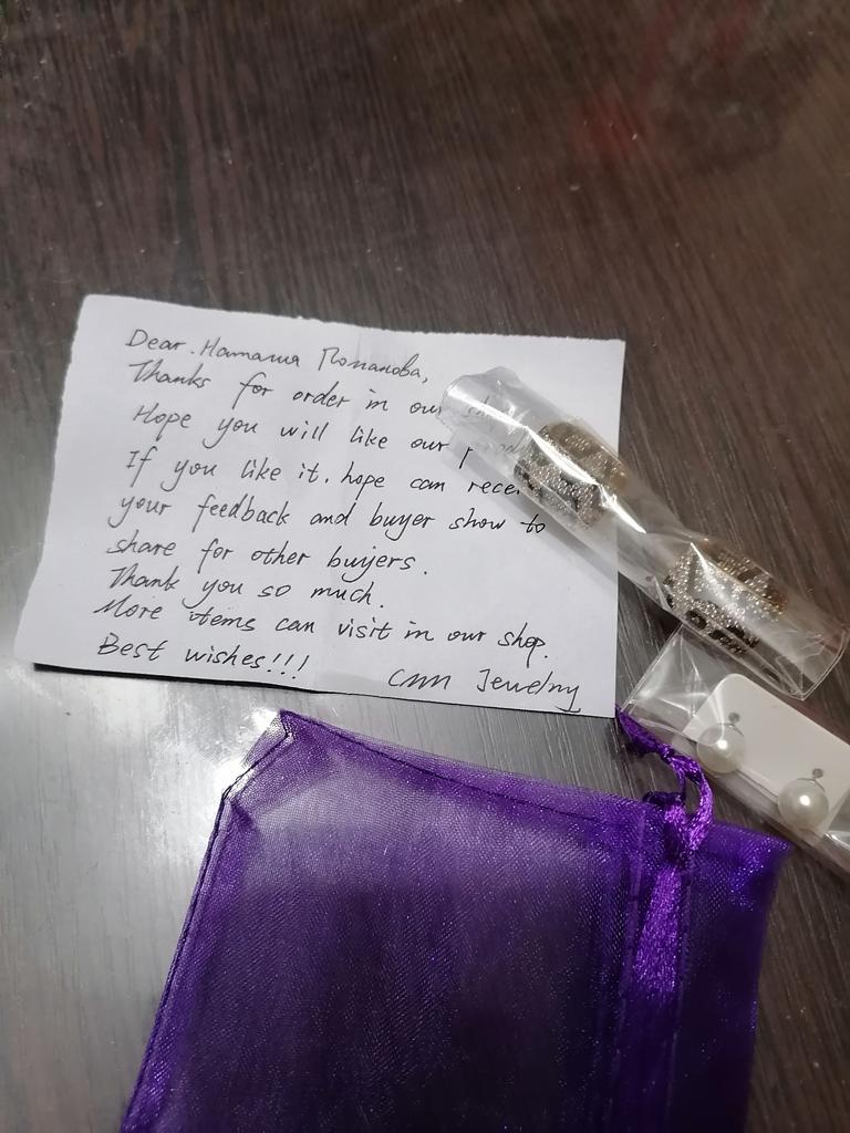 Красивые серёжки, спасибо большое продавцу! В том числе, за очень уважительное отношение к покупателю!) Я уже не говорю о том, как это всё тщательно и аккуратно упаковано, в пакетик, мешочек, пупырку и коробочку, но ещё и пусетки жемчужные в подарок и письмо с личным обращением. Ну ваще!))) Я покорена))) Единственный маленький нюанс, но, возможно, лично для меня - чуть широковаты штырьки, которые вставляются в дырочку на мочке уха. Но, конечно, втиснула уж) Посмотрим, как будут носиться. Но, вообще, порадовали. Да, пришли очень быстро. То, что заказала в ноябре всё ещё идёт или едет, и, возможно, не приедет. А эти пришли молниеносно)) Очень удивилась. Спасибо ещё раз!
