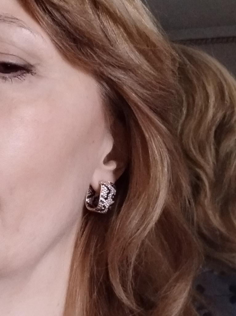 СЕРЬГИ ОТ СММ 💎💎💎 Доставка чуть меньше месяца в сборной посылке 📦🛩 Сказать, что они ШИКАРНЫЕ , это ничего не сказать ! 😍 Серьги из серии ДОРОГО-БОГАТО .💯 Сегодня довольно пасмурный день, но накануне моего обзора я выгуливала их в солнечный денёк и , могу вам сказать, на солнышке переливаются , словно они бриллиантовые !💎💎💎🤩 Металл под золото . Рисунок- имитация кожи рептилии . Камни на лицевой поверхности и со внутренней , т.е. рисунок виден насквозь. На задней стенке его нет . Таким образом, можно носить и задом наперед . Что автоматом делает из одной пары ,сразу две ! 😉 Серьги не тяжелые, но вес имеют, т.е. нет ощущения, что у вас пластик в ушках. Исполнение очень качественное.👍💯👍 Гладкие, аккуратные ! Выше всяких похвал! 👍💯👍 Отличные. К покупке рекомендую .💯 Спасибо, Джум 😘