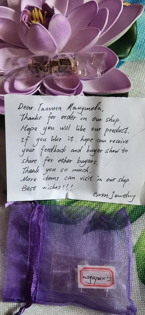 Девчонки, это такая прелесть!!! Я в восторге, глаз не оторвать! Продавец порадовал качественной упаковкой и подарочком в виде серёжек-жемчужинок, спасибо за внимание! И очень порадовало вложенное в мешочек письмо от производителя (магазина) на английском языке с благодарностью за выбор их товара и приглашением в магазин за другими покупками! Обязательно воспользуюсь им и стану постоянной покупательницей! Теперь о самих серьгах: они прекрасны! Размер комфортный, средний, отделка очень красивая, как бы под змеиную кожу, блестят недёшево, застёжка очень оригинальная, впервые такую вижу! То есть, лицевая сторона с застёжкой образуют завершенный круг. Очень интересно, необычно, классно! Запор чёткий со щелчком. Обожаю качественную бижутерию!!! И, как сказала великая Коко Шанель, "Люди со вкусом носят бижутерию, а все остальные - золото"... Ещё раз выражаю благодарность всем причастным к такому удачному приобретению! После того, как начну носить (весной!), обязательно отзыв дополню. 👍👏😊