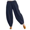 ZANZEA Женские летние хлопковые брюки, однотонные повседневные свободные шаровары с эластичной резинкой на талии