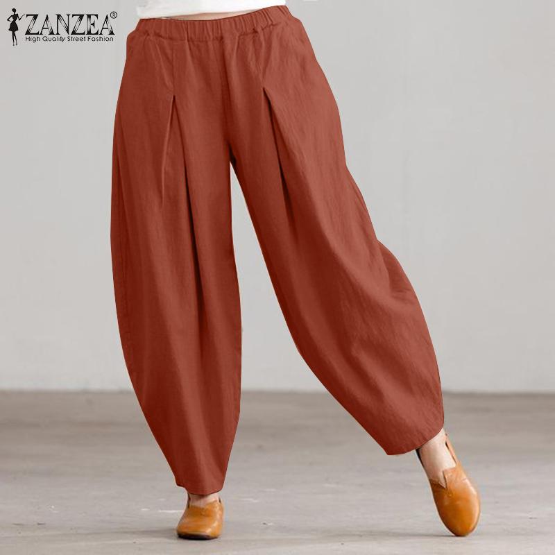 ZANZEA женские летние хлопковые брюки однотонные повседневные свободные шаровары с эластичной резинкой на талии — купить товар онлайн с бесплатной доставкой по всему миру!