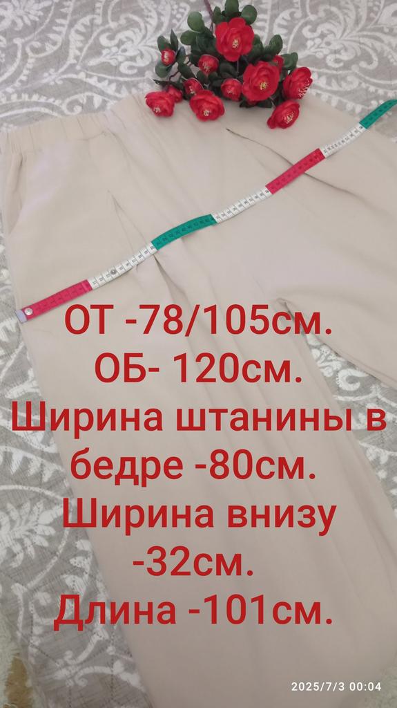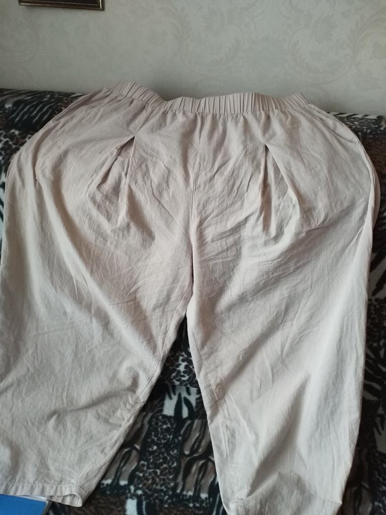 раньше брала 3XL укороченные, были впритык и после стирки сели на 10 см в длину. взяла побольше, в таблице размеров написано одно, в реальности в 4XL ОБ-170см, резинка на талии растягивается до 120 см. длина 102 см., после стирки в ход. воде стали 98см. штаны не большие, они огромные. ткань хлопок, да. это хорошо, но не для этого фасона, толстый, плотный хлопок, раньше такая ткань исп. на посылках, стоит колом, не драппируется. брюки на фото совершенно не соответствует полученному товару. даже для дома как-то не очень. есть плюс - это очень смешно, и поучительно.