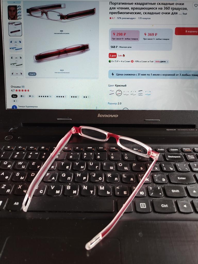 Очки симпатичные, читать можно, спасибо,правда не сразу поняла как открываются душки, а потом разобрались, первый раз такое устройство вижу, вообщем к покупке рекомендую