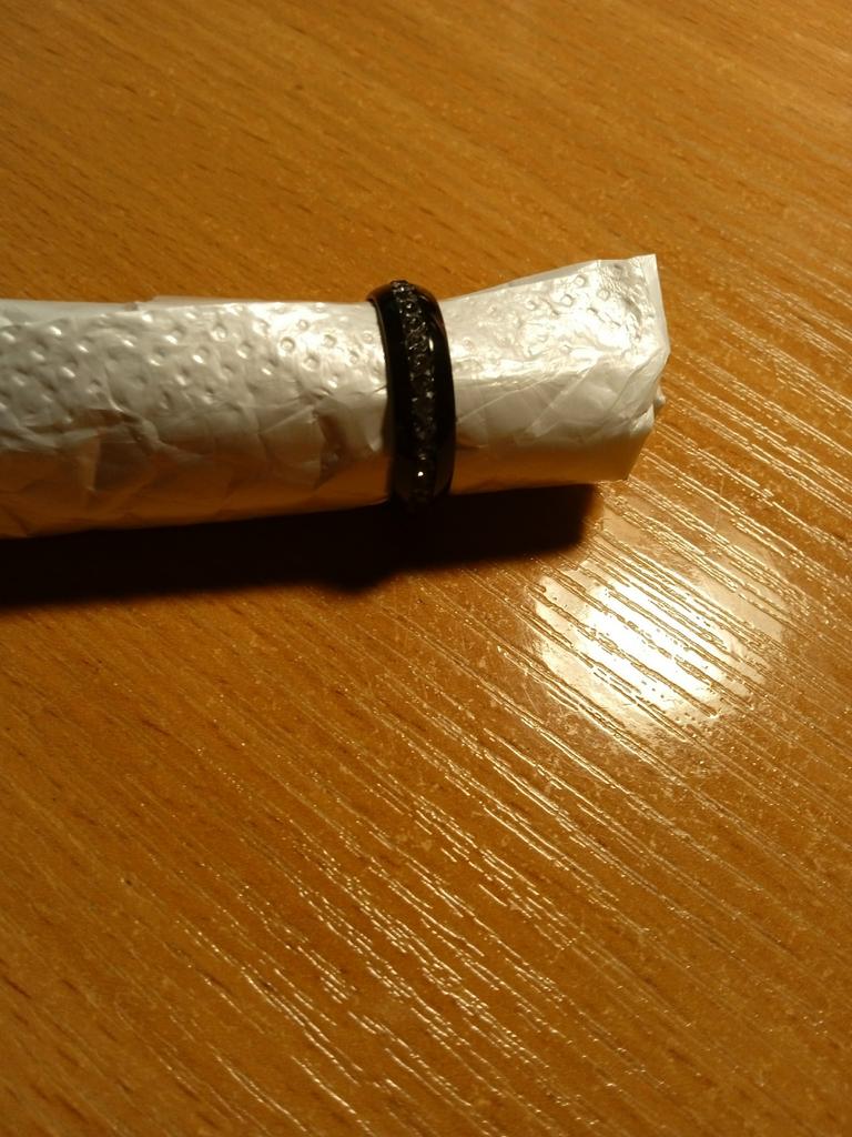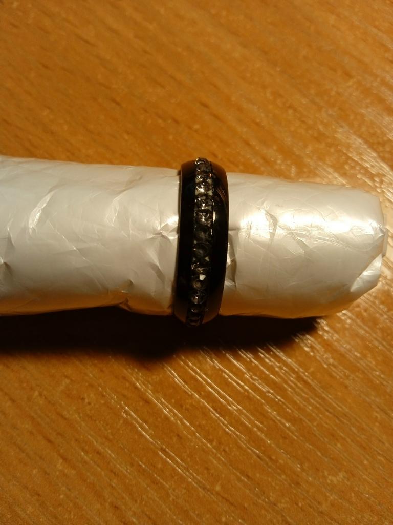 Колечко пришло в сборной посылке, в которой было 4 заказа. Заказ делала 14 ноября, посылка пришла 26 января, 2 месяца и 13 дней. Заказывала на мой 19 российский заказала 9 размер. Черный цвет вообще не люблю, но по отзывам решила заказать, и не ошиблась, красиво очень на черном белые стразы сверкают. Колечко из пластика, но очень комфортно ощущается на пальце. Заказала еще серебристый цвет, тоже красивое, но черное лучше смотрится. Колечко подошло, понравилось, но мне очень не понравилось, что пишут доставка 12-15 дней, а посылка шла очень долго... Добавляю отзыв: в процессе носки колечко изменилось, камушки были серебристые, сверкали красиво, но потом камушки почти все стали прозрачными, чуть осталось светлых серебристых, немного сверкают и прозрачные, но уже не такое интересное стало колечко. Фото измененного колечка прилагаю с разных сторон... Очень жаль.