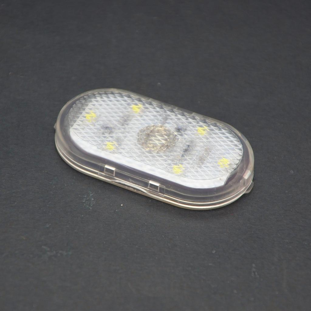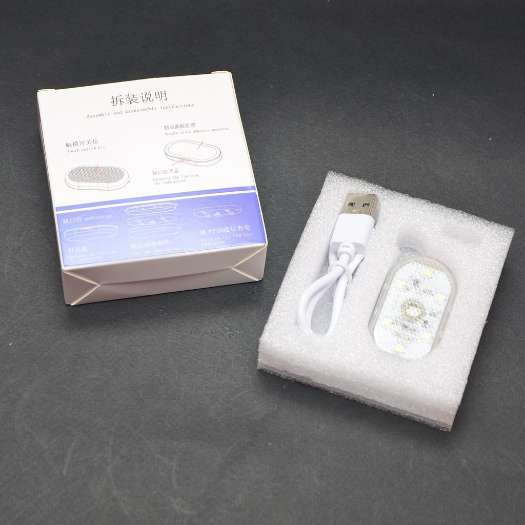 Светильник в автомобиль. Такой светильник идеально подойдёт в бардачок или багажник автомобиля. Благодаря своим маленьким размерам, его можно использовать и в домашних условиях - в шкафу, ящике и так далее. Поставляется в коробке с кабелем micro USB для зарядки. Включается и выключается лёгким прикосновением на сенсор, который расположен в центре. Для зарядки светильника необходимо снять крышку и подключить кабель. Особенности: - ёмкость аккумулятора 120 mAh; - напряжение 5 V; - 6 светодиодов; - время работы примерно 1,5 часа; - время зарядки примерно 40 минут. Для локального освещения вещь хорошая, рекомендую!