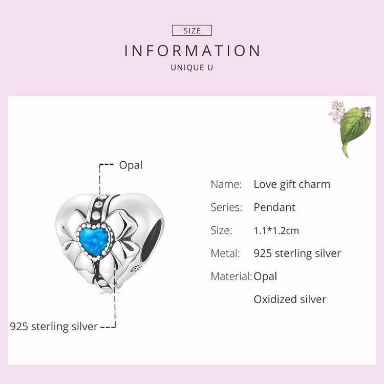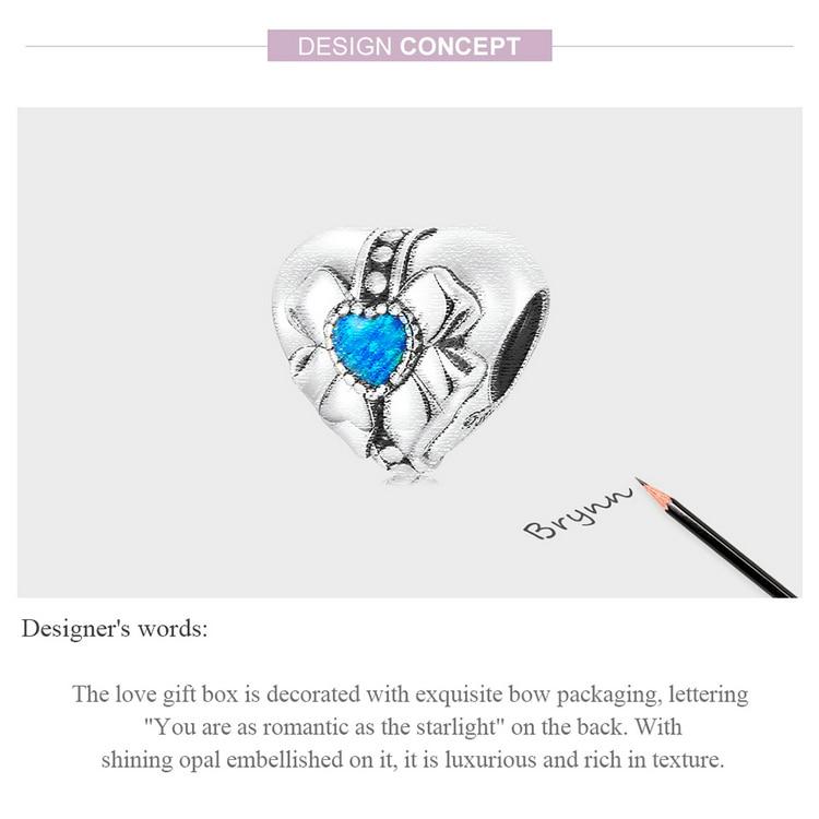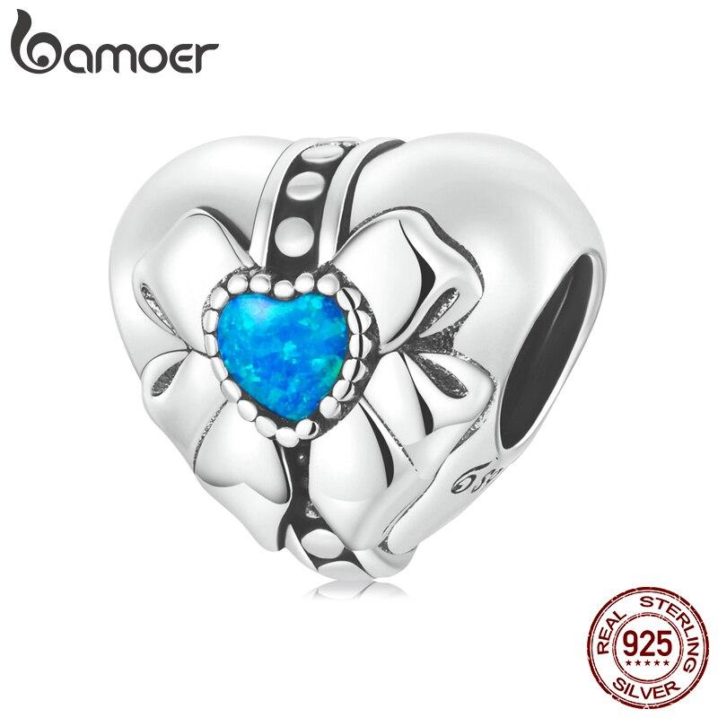BAMOER бусина в форме сердца из стерлингового серебра 925 пробы, подарок в виде любви, подвеска для изготовления браслета или ожерелья, ювелирные изделия, синий опал, подарок на день рождения