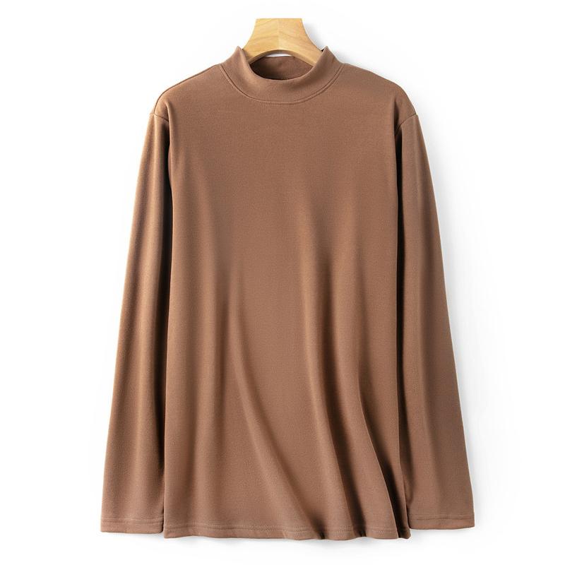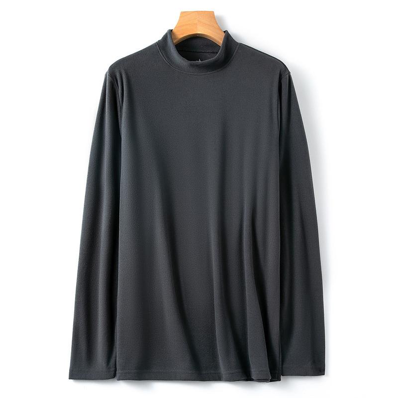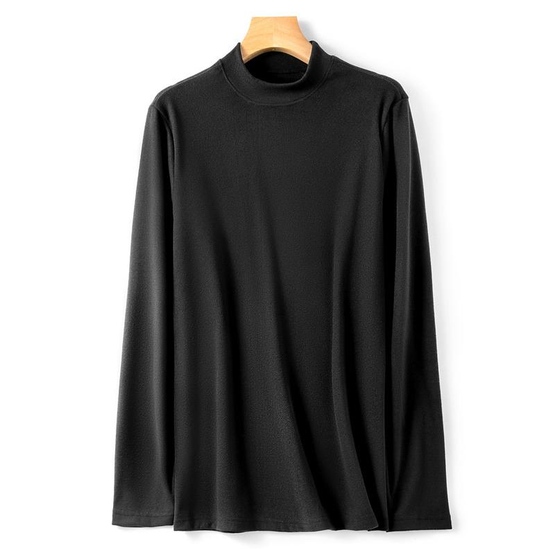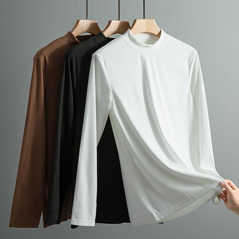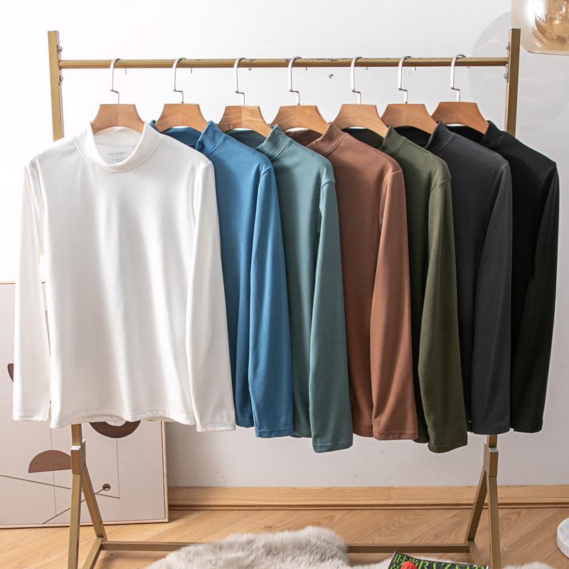 Мужские топы, однотонный пуловер со средним воротником, женский и мужской свитер, тонкое нижнее белье, бархатная теплая одежда, бархатные футболки с длинными рукавами для мужчин