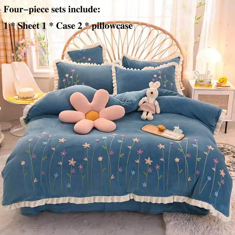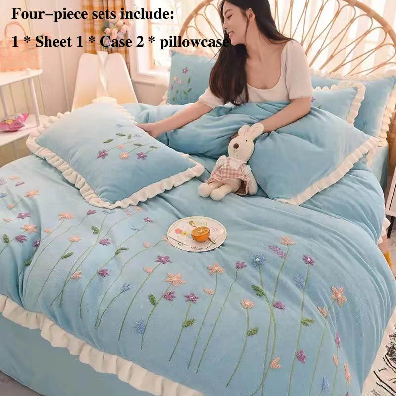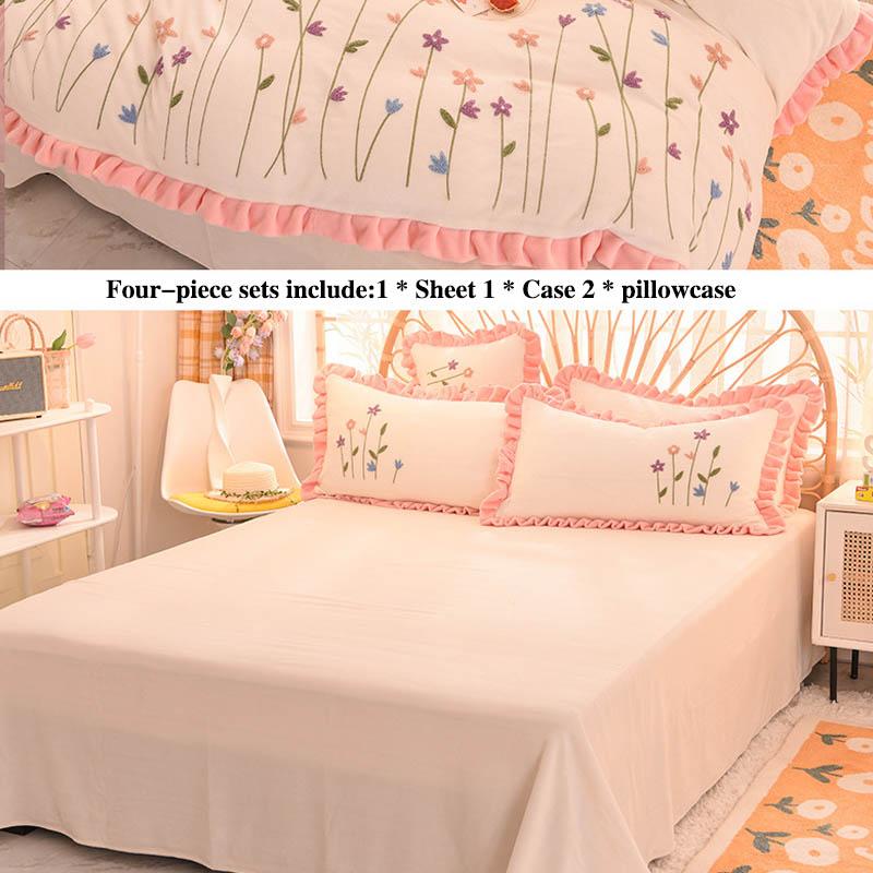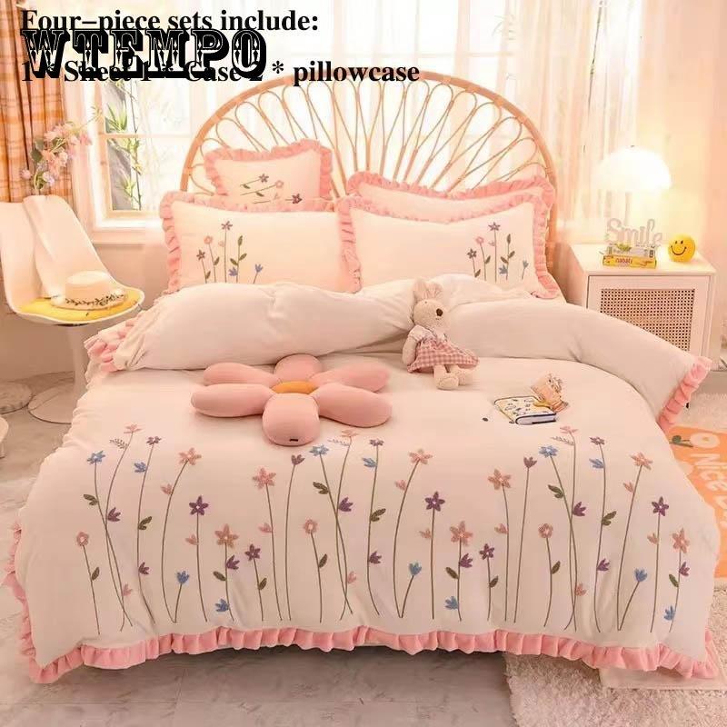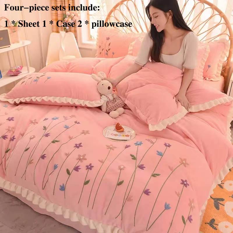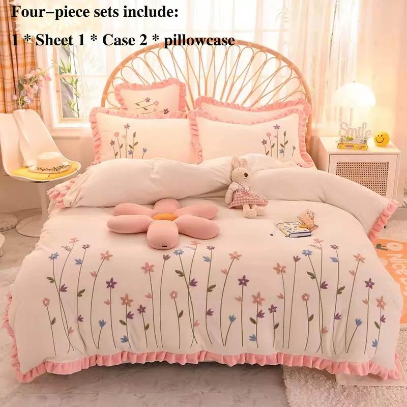 Молочная бархатная четырехсекционная осенне-зимняя толстая теплая двусторонняя бархатная кровать, односпальная кровать, набор наборов подушек, 1,8 метра, 2 метра, кровать Princess Wind