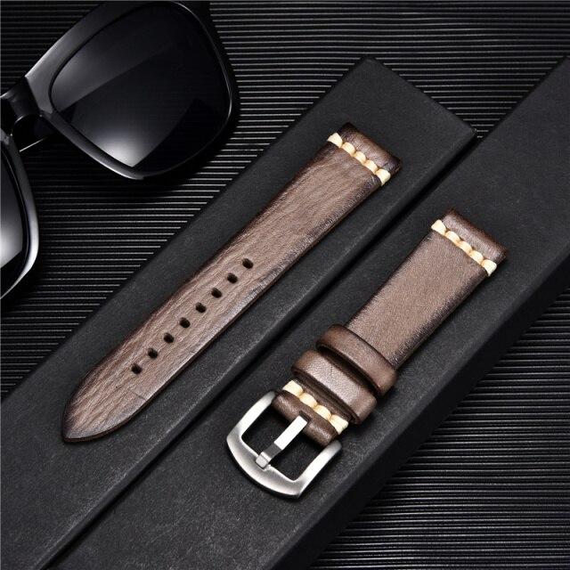Винтажный ремешок для часов из натуральной кожи с морщинами, мужской ремешок для часов 18 мм, 20 мм, 22 мм, 24 мм, ремешки на запястье, браслеты, аксессуары для часов