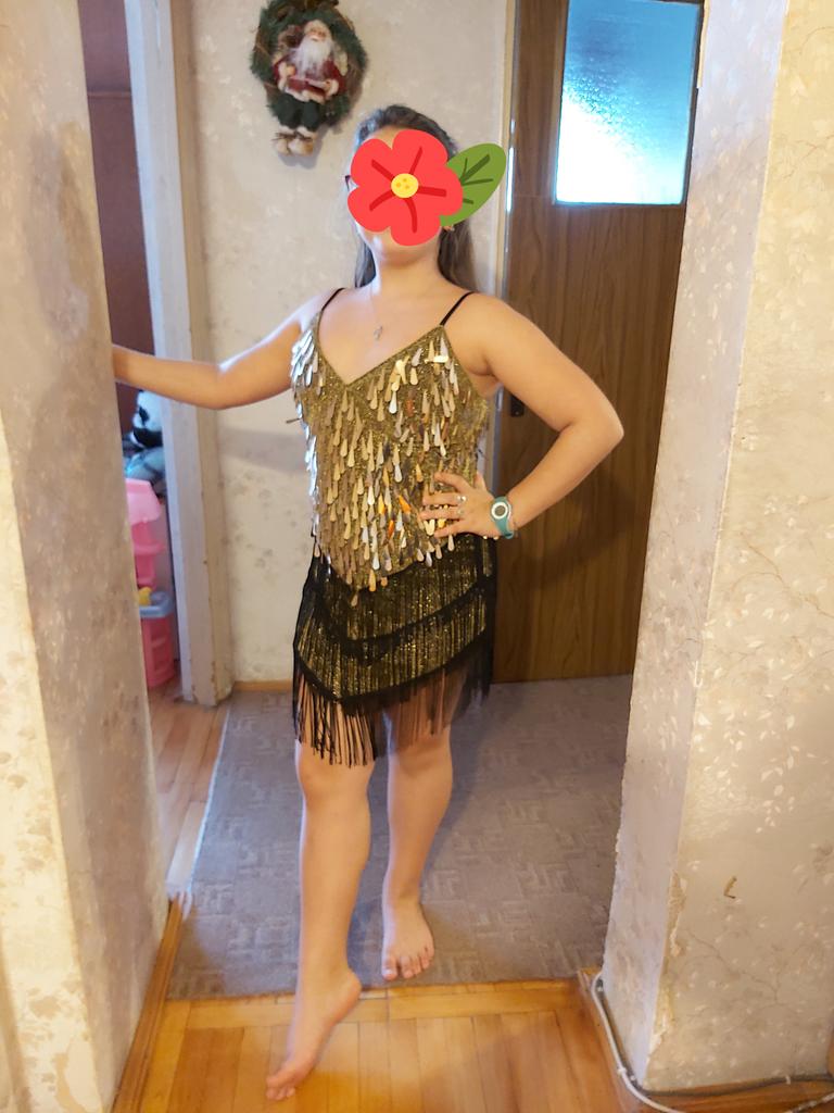 Товар пришел в составе других посылок, трек отслеживался. Платье достаточно короткое, лиф какой-то громоздкий, пока не вижу себя в нем, тем более танцевать латину...