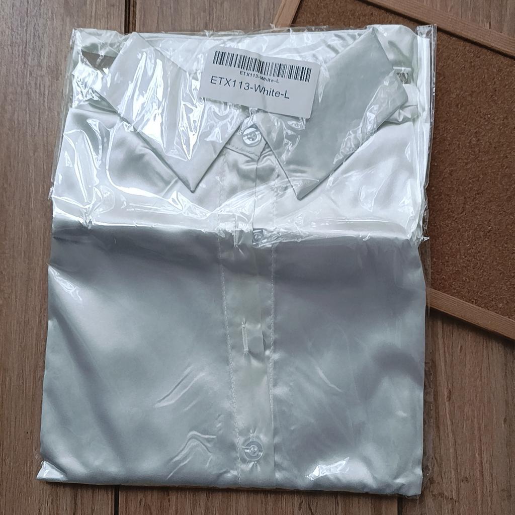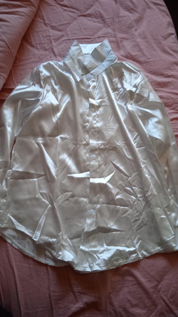 Белая атласная рубашка с роскошным блеском. Вроде бы и базовая вещь, а выглядит нарядно! К тому же, вечная классика! Давно хотела такую;ведь белая рубашка- базовая вещь, нужна всегда. А у мужа отнимать не вариант... Такая рубашка хороша как под строгий офисный лук, так и с топиком, нараспашку. Фасон самый что ни на есть классический, рубашечный. Вытачек нет. Пуговки перламутровые, в тон рубашки. Размер брала L на параметры ОГ 90, ОТ 74, ОБ 100, рост 180. Сшита рубашка качественно. Фабричный пошив. Если вы искали что-то подобное, рекомендую.