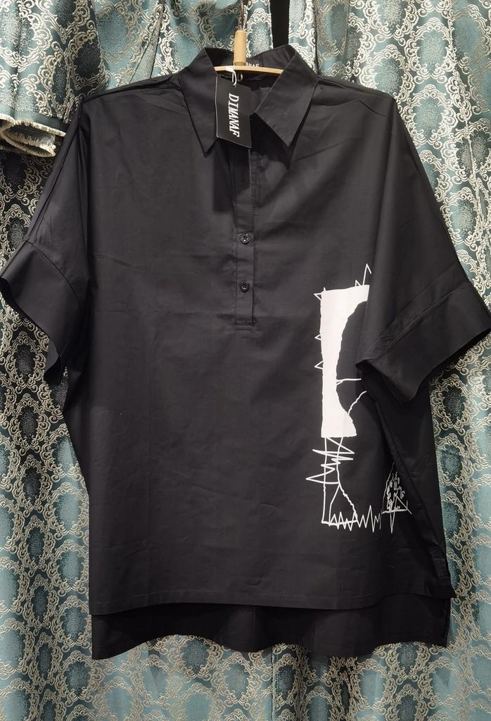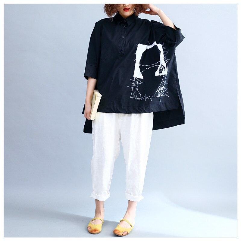 DIMANAF Женская одежда Повседневная женская рубашка Блузка Черная свободная принтованная футболка Туника Хлопковая свободная футболка на пуговицах 2024 Весна Лето — купить товар онлайн с бесплатной доставкой по всему миру!