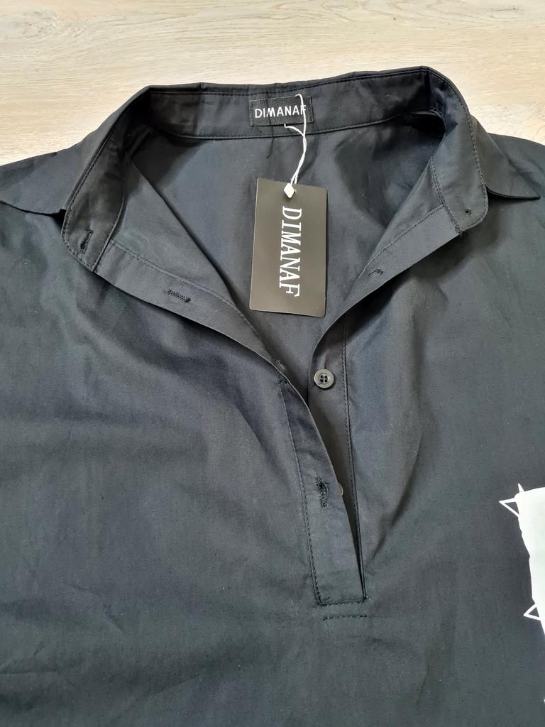 Dimanaf Женская одежда Повседневная женская рубашка Блузка Черная объемная принтованная футболка Туника Хлопковая свободная футболка на пуговицах 2024 Весна Лето