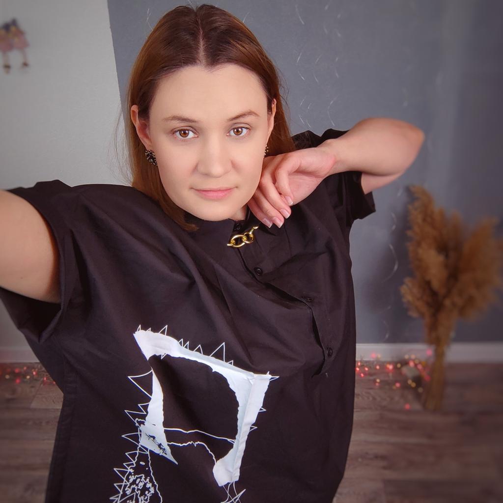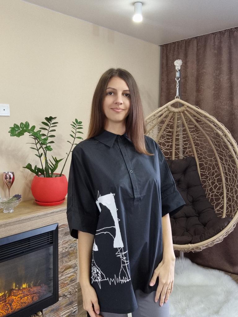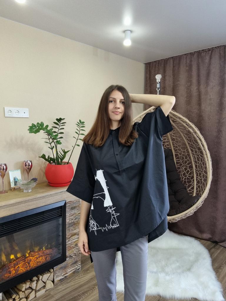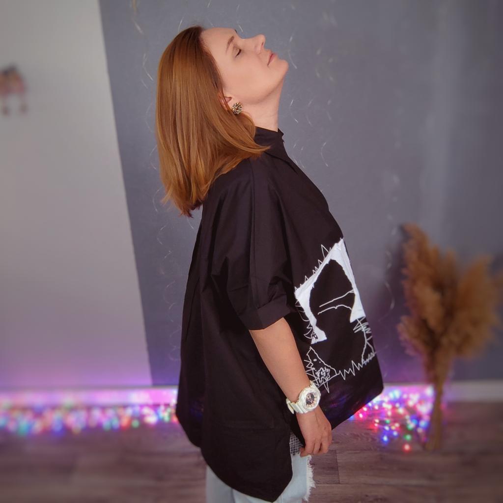 Крутая рубашка оверсайз от DIMANAF 🖤🤍 + видео 📹 обзор ✅Inst: Catherine_blogger Ну очень понравилась, прям 100% соответствует моему стилю и мировосприятию! Подойдёт практически на любое телосложение, рост и возраст. Ткань рубашечная, гладится плохо, но её не нужно выглаживать идеально, состав: 65% хлопок и 35% полиэстер, на лето, но не на безветреную жару. Бирки и этикетка 🏷 присутствует, товар был доставлен в фирменной зип-пакете. Воротник держит форму. Застёгивается на 4 пуговицы. На спинке есть сборка. По бокам есть разрезы, задняя часть на 10 см длинее передней. Термоаппликация белого цвета, качественная. Мой рост 177 см и параметры 98-78-103 см. Размер единый. 📏Замеры: Ширина - 79 см. Длина передней части - 74 см. Длина задней части - 84 см. Товар однозначно рекомендую к покупке, просто супер, не пожалеете👍👍👍💯💯💯💯💯 Доставка ✈ до Минска заняла месяц. Спасибо продавцу и джуму 😘 Благодарю вас за ваши лайки,❤ комментарии 💬 и подписку ✅