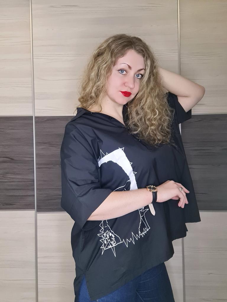 Ну, что? Рассказывать о том, что мне понравился фасон этой рубахи и то как она на мне сидит или на фотографиях всё и так видно? 😀 Состав - 65% хлопок, 35% полиэстер. Есть бирка, которая это подтверждает (см. последнее фото) Фасон рубахи, а в особенности рукава не даст вам вспотеть в жару при условии наличия лёгкого ветерка. На мои ОГ - 102 см, ОТ - 86 см, ОБ - 104 см сидит максимально свободно. В тоже время не выглядит огромной. Напомню, мой рост - 166 см. Замеры: Длина по спинке - 84 см. Длина передней части - 74 см. Ширина изделия - 79 см. Размер, как вы поняли - единый. Крой - oversize. Рукав - доломан. Ворот - классический рубашечный. Сзади - клин, позволяющий рубашке быть ещё немного шире. Задняя часть рубахи длинее на 10 см чем передняя часть. Плюс в боковых швах внизу есть разрезы. Длина разрезов - 9 см. Всего 4 пуговки имеет рубаха. Обратите внимание, пуговки идут не до самого низа и это очень меня устраивает. Рисунок выполнен в виде гладкой термоаппликации (только белая часть). #zara И да! Я подстриглась. Чтобы иметь возможность использовать по максимуму свой новый фен-стайлер от CkeyiN 🔗 https://at.joom.com/dl/Gmwa6bLZ58vyU4Sa8 , о котором я рассказывала в прямом эфире 🔗 https://at.joom.com/dl/Rff8HzGR7qDfqxoW9 Активные ссылки в комментариях