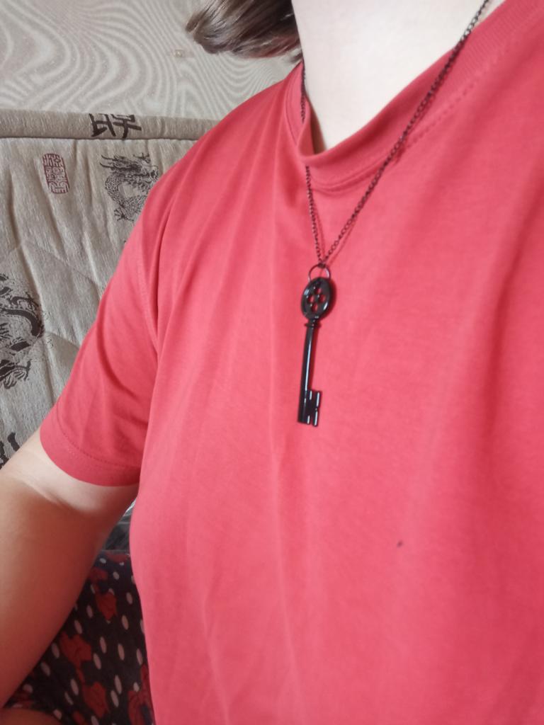 Аккуратный металлический ключик, краска не слазиет, острых углов нет, цепочка тоже черная, длина идеальная