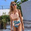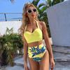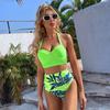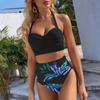 Бикини с высокой талией и принтом листьев, женский купальник с эффектом пуш-ап, женский купальный костюм с лямкой на шее, винтажный купальный костюм, Biquini