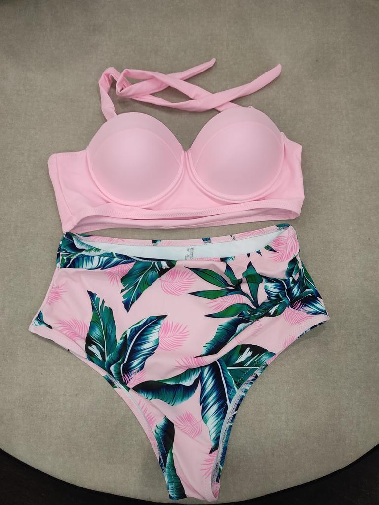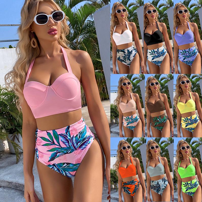 Бикини с высокой талией и принтом листьев, женский купальник с эффектом пуш-ап, женский купальный костюм с лямкой на шее, винтажный купальный костюм, Biquini — купить товар онлайн с бесплатной доставкой до всему миру!