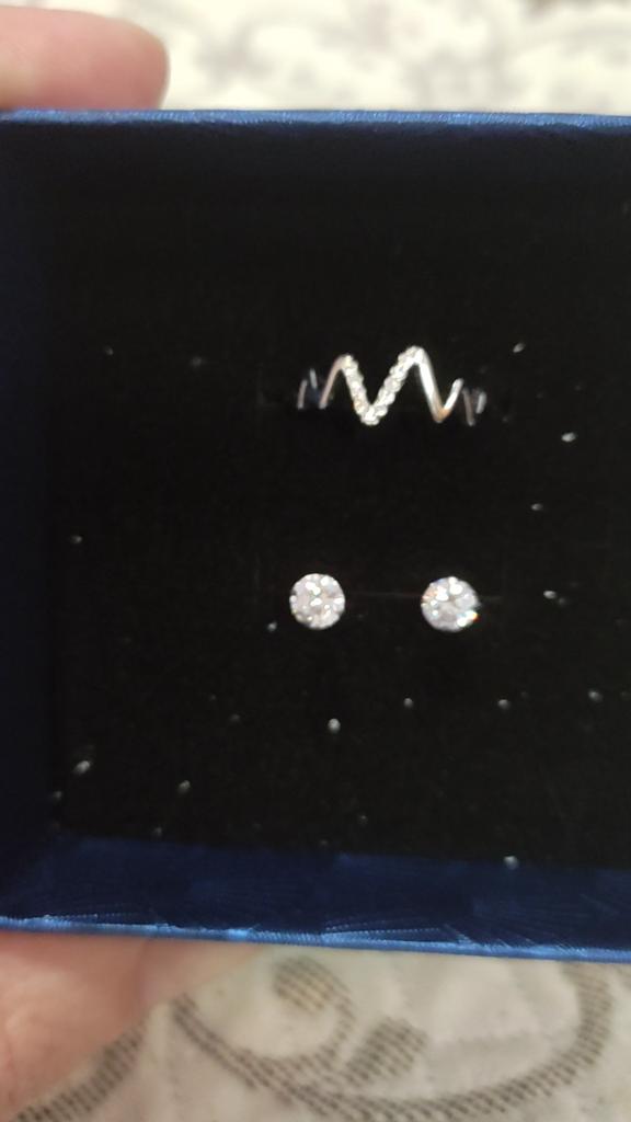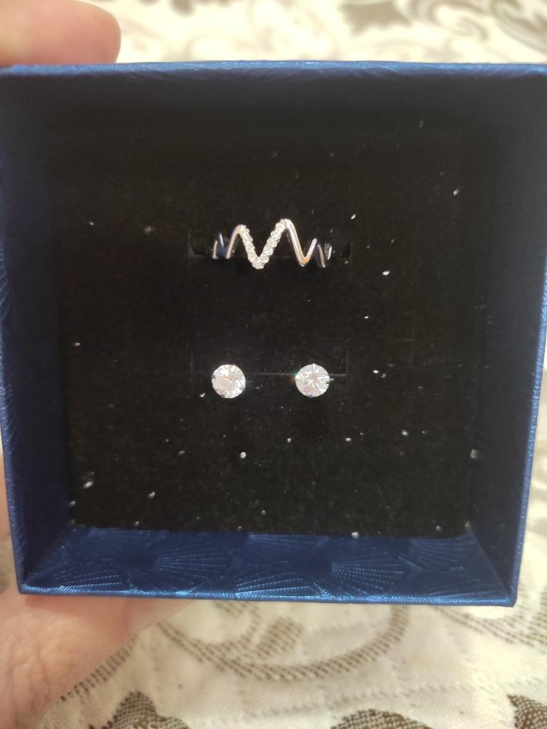 Прекрасное кольцо,в подарок ещё и пусеты,жалко пусеты пришли без силиконовых захлушек, спасибо продавцу,порадовал.Ношу не снимая почти три недели,как блестело кольцо,так и есть.