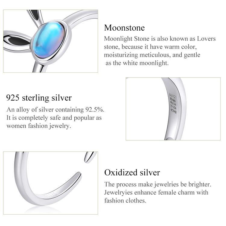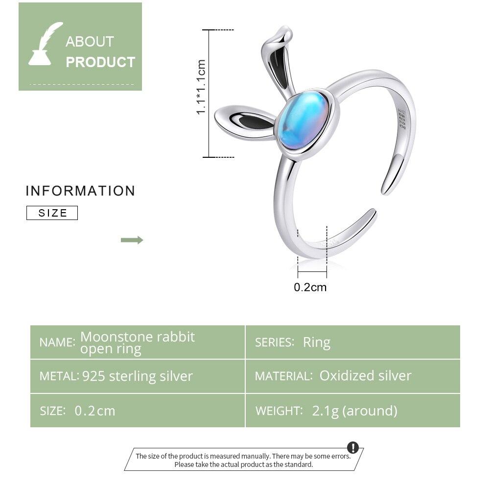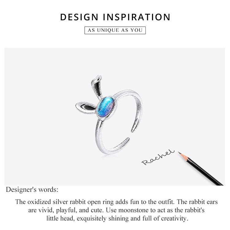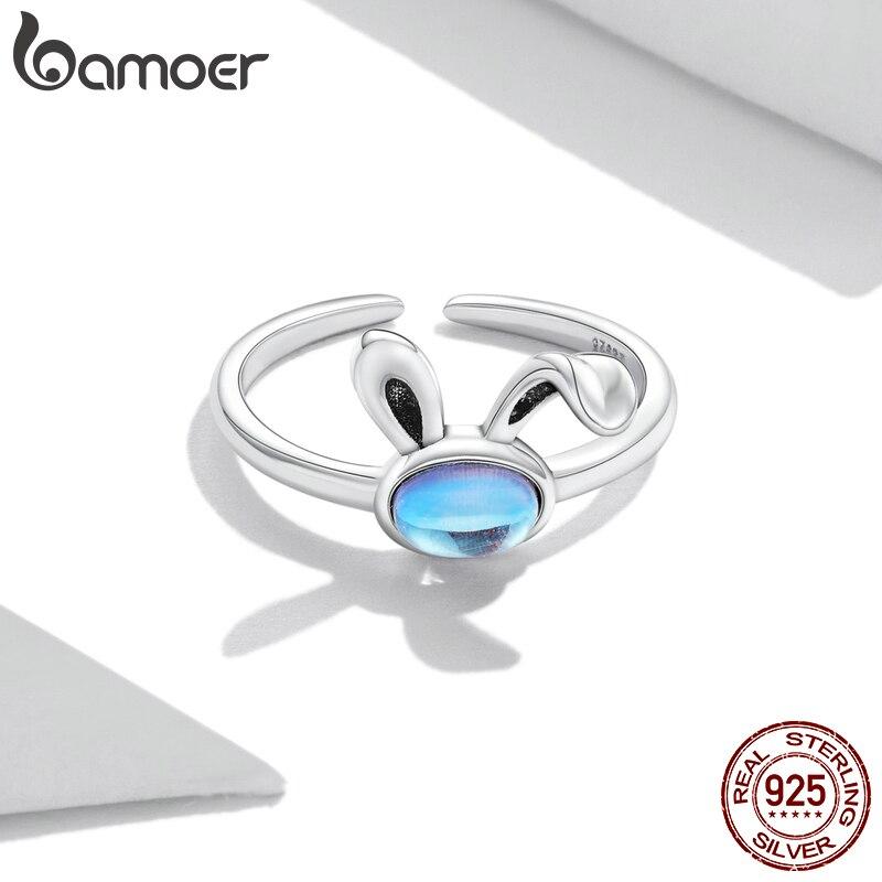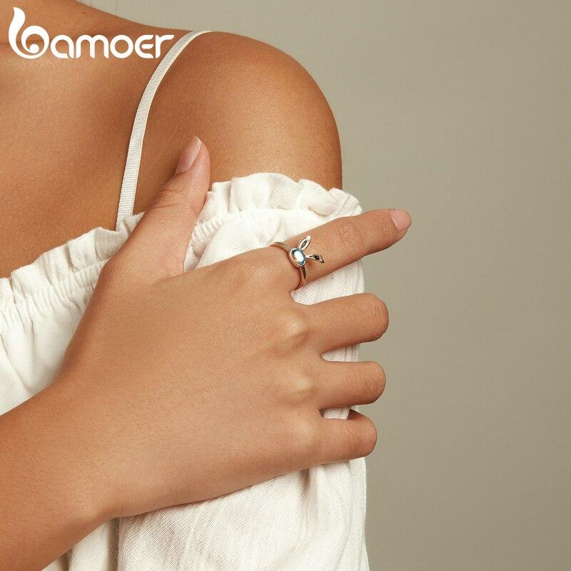 BAMOER Новое кольцо из стерлингового серебра 925 пробы с лунным камнем и кроликом для женщин, милое кольцо с кроличьими ушками, комплект ювелирных изделий, подарок дружбы