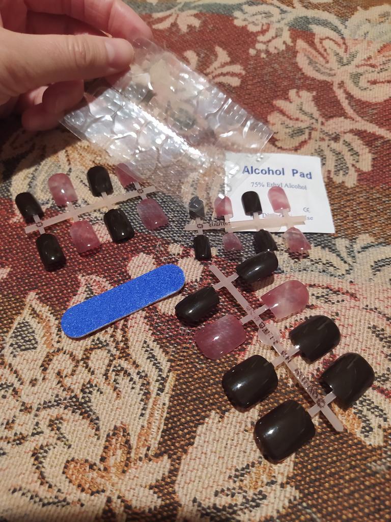 Из-за аллергии 🤕не могу делать наращивание ногтей, единственный выход из ситуации - эти замечательные ногти 😍. Заказывала у нескольких продавцов, естественно ногти разные (по материалу, форме, длине, дизайну и т.д.). Эти ноготки из мягкого пластика, я думала что они сломаются с первого дня - но ошибся. По качеству они хорошие, цвет очень приятный, не очень длинные - как я и хотела, форма красивая, смотрятся очень натурально. В комплекте было ище и наклейки, маленькая пилочка и одна обезжиривающая салфетка. Единственным недостатком является то, что наклейки немного толстые и остаются место между типсами и ногтем. Я носила их неделю, некоторые оторвались и я уже сняла их все. После этого я могу надеть их обратно, они в хорошем состоянии, они не обесцвечены, не сломаны, не поцарапаны и т. д. Я думаю, что если не слишком часто опускать руки в воду - они продержится дольше, но я каждый день мою посуду, убираюсь и т.д. Я рекомендую этот набор👍👍👍он просто супер 🤗.