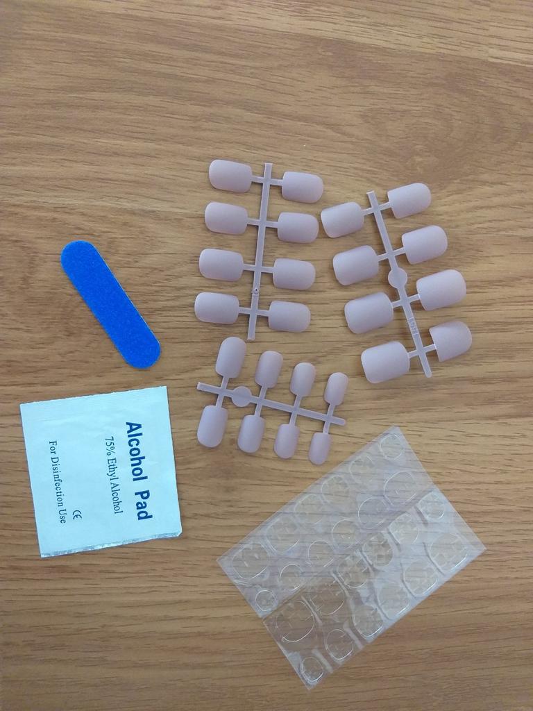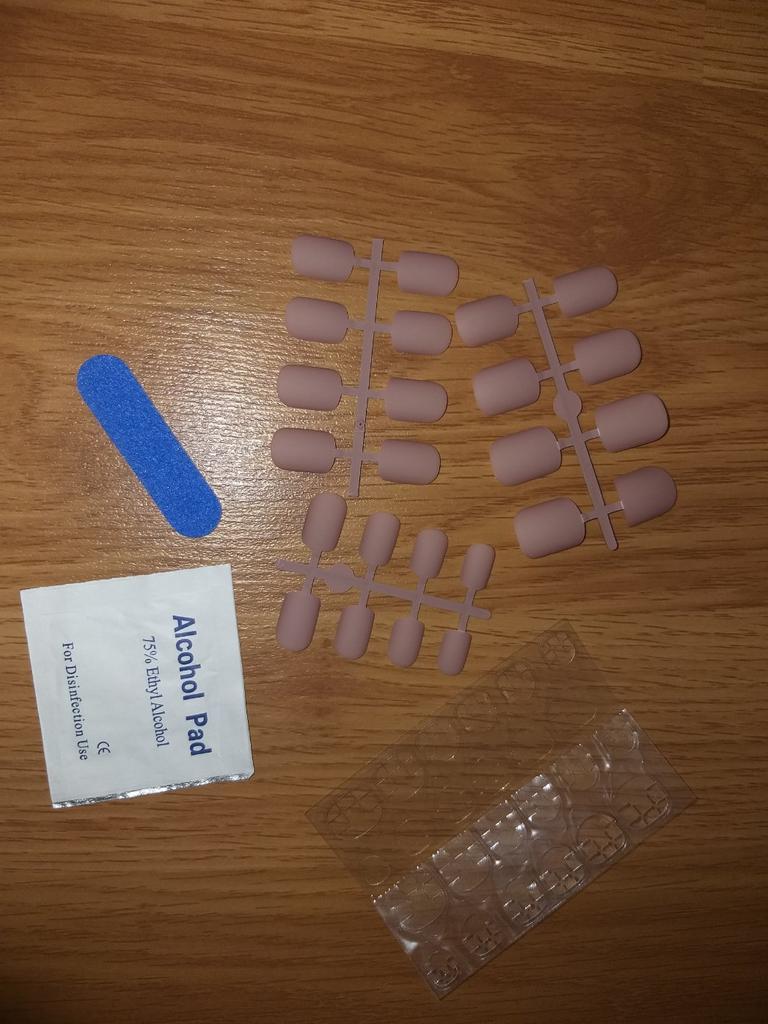 Заказ пришёл спустя 34 дня, как я заказала. В принципе не долго. В посылке было сразу 3 товара, что очень удобно. 1-е ногти не так понравились по цвету и форме, немного другие представляла, но ничего, форму можно подкорректировать пилочкой, что идёт в комплекте. В сам набор входит: пилочка, обезжиривающая салфетка, наклейки (клей) на ногти и сами ноготочки (3 пластинки по 8 ногтей в каждой). Сами ногти глянцевые.