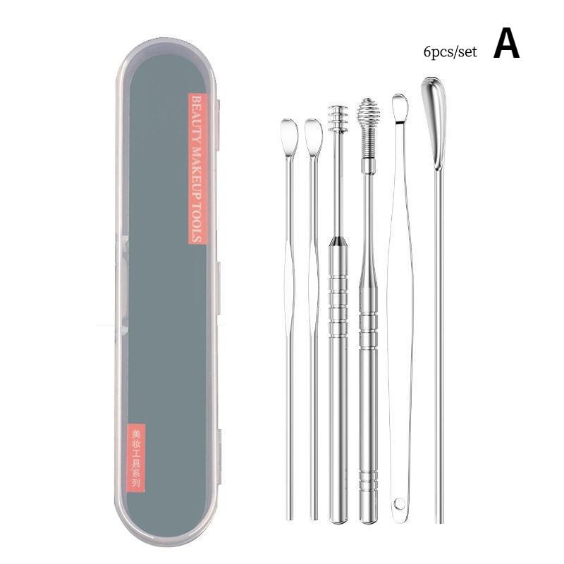 6 шт./компл. ушная сера для чистки, нержавеющая сталь, ушная палочка для удаления воска, кюретка, очиститель для ушей, ложка для чистки ушей, уход за ушами