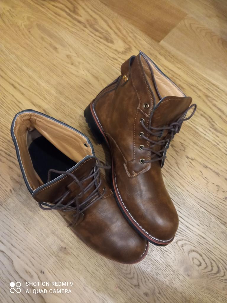 Выглядят брутально. Лёгкие. Швы аккуратные. Подошва мягкая. Кожа искуственная, изнутри и снаружи. С не очень приятным запахом гари, достаточно сильным. Стельки двойные-пена/ткань синтетика.Заказывал 45 на 43. Не угадал. Мне пришли очень большие. Надо свой размер брать. Постояли дней 10 на балконе, запах уменьшился. Вложил ещё одну стельку. Пойдёт! Из квартиры, пока не выходил. При ходьбе подозрительно перегибаются в зоне носка. Через день вынес сии ботинки, опять ,на балкон. Всю квартиру "ароматизировали".Вполне пригодны как средство для скрытия других неприятных запахов. Подарил на Н. Г.другу, под его размер. Носит, доволен. Не промокают! Ничем не обрабатывал. Запах прошёл, хотя первое время держал шедевр на балконе. Решил заказать себе на пару размеров меньше.