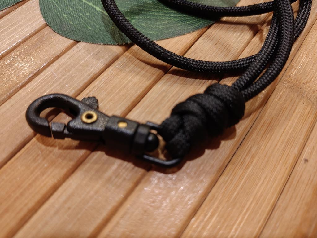 Шнурок хороший. Правда, заказывал синий, а пришёл болотно-зеленый. Карабин прочный, хотя надёжней был бы металлический