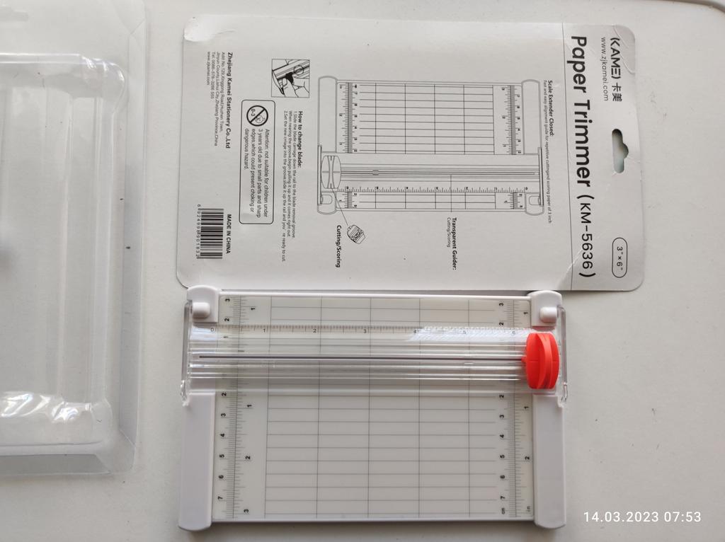 Получила резак для бумаги, мини-тример ,пришел целый,без брака,,работает хорошо с тонкой бумагой,для картона не подойдёт.Да, и пришел не такой как на картинке, пришел другой.!