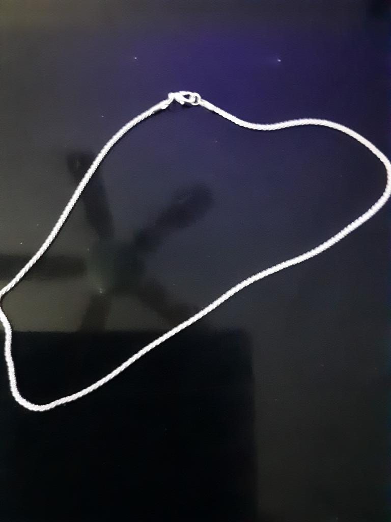 Цепочка серебристого цвета. Плетение жгутом Заказала два размера: 40 см и 45 см Цепочка 40 см более мягкое плетение, и она более тонкая. Другая, 45 см, диаметр потолще, более жёсткое плетение, поэтому её слегка стягивает. Нв шее смотрятся отлично. Думаю, на руке также будет нормально. Будет ли цеплять волосы или одежду, пока не могу сказать. На сколько хватит её цвета и прочности при правильном использовании, время покажет. А так, пока всё хорошо🙂 Спасибо всем работникам производства, продавцу, Джуму и службам доставки. Спасибо всем, кто оставляет свои обзоры. Всем успехов и добра 🌹