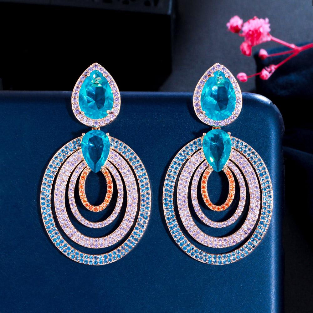 Роскошные серьги-капли CMM с несколькими круглыми цветными циркониями и большими каплями — купить товар онлайн с бесплатной доставкой по всему миру!