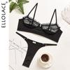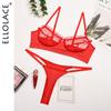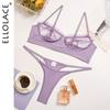 Сексуальный кружевной женский бюстгальтер Ellolace с рюшами, кружевное белье, женское нижнее белье, прозрачные короткие комплекты для ухода за кожей, короткие комплекты, эротические интимные комплекты