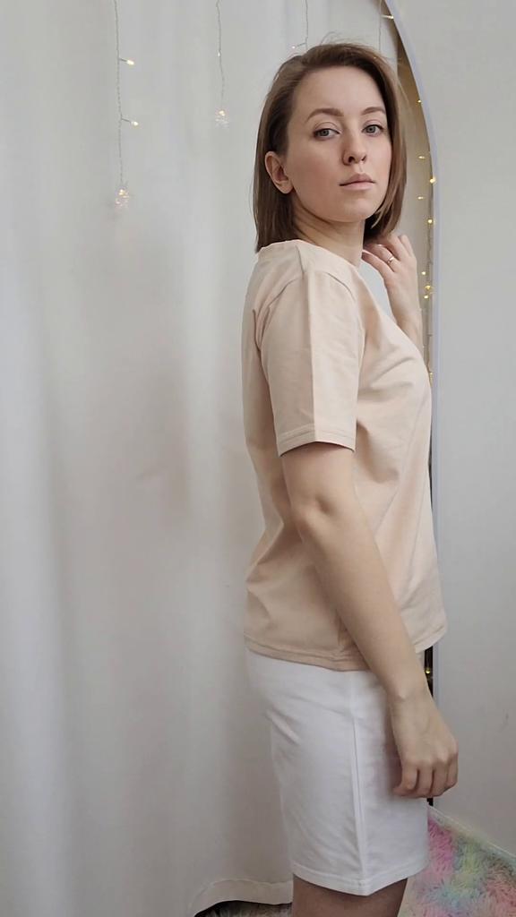 БЕЖЕВАЯ ФУТБОЛКА С ПРИНТОМ Ткань хлопок-эластан. Очень плотная. Приятная к телу. Переведите валюту приложения в доллары и цены будут ниже 🌷я оплачиваю картой Mastercard 💳 конвертирует без проблем. Обязательно проверяйте курс доллара в своем банке перед сменой валюты Выполнена идеально. Все ровно, нитки не торчат. Принт-наклейка🌸 🎀Мои параметры🎀 📏Рост 161 📏ОГ 88 📏Объем под грудью 73см 📏ОТ 67 📏ОБ 96см 📏Вес 56кг 📏Ширина плеч 42 см 📏Длина руки до кисти 60 см 📏Охват бедра 54см Размерный ряд: M-xl На мне размер М У ПРОДАВЦА ЦВЕТА В АССОРТИМЕНТЕ. На лето очень ✌️смотрится с чем угодно 🤪 Доставка до Саратова 26 дней. Трек отслеживался полностью на всем пути. Однозначно рекомендую и вам✌️ Я очень довольна🥰❤️Все футболки пришли в одной посылке ✌️
