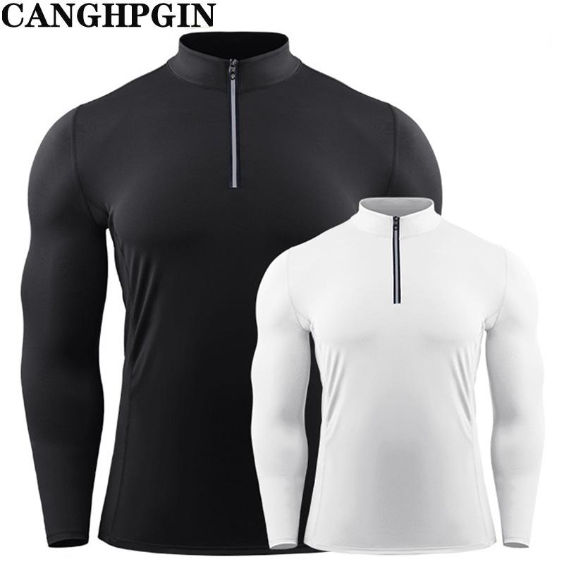 CANGHPGIN Мужская компрессионная спортивная футболка для бега, плотная спортивная одежда с длинными рукавами для фитнеса, быстросохнущая