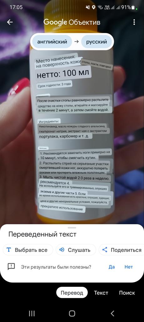 Пока только в фотоперводчике перевела, как использую - дополню отзыв обязательно! Но уже радует пшикалка: есть фиксатор от случайного нажатия. Надпись "open" подсказывает, что пшикать можно, по окончании процедуры поворачиваешь белую штучку туда, где нет надписи и всё, не нажимается. 🙃😊 Дополняю: цвет такой же оранжевый и яркий, как и сама баночка, распыляется легко и так же легко окрашивает все вокруг) 🤔 я подкладывала полотенце, на нем остались следы, пока не стирала, не знаю, отстирается ли. На ногах цвета не осталось. 😊 Легонько массируя, сразу же образуются "катышки" мертвой кожи, как, например, пилинг-скатка для лица. Ножки действительно стали мягкие, вид ухоженный. Я заранее еще их замочила в водичке с морской с0лью)) 😁 Кутикула полностью, конечно, не ушла, но общий вид и состояние, несомненно - класс! Итог: я покупкой довольна! 😎