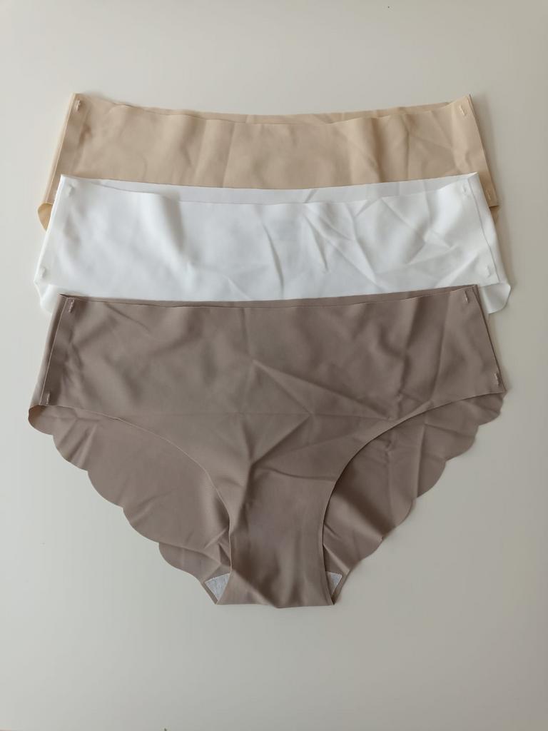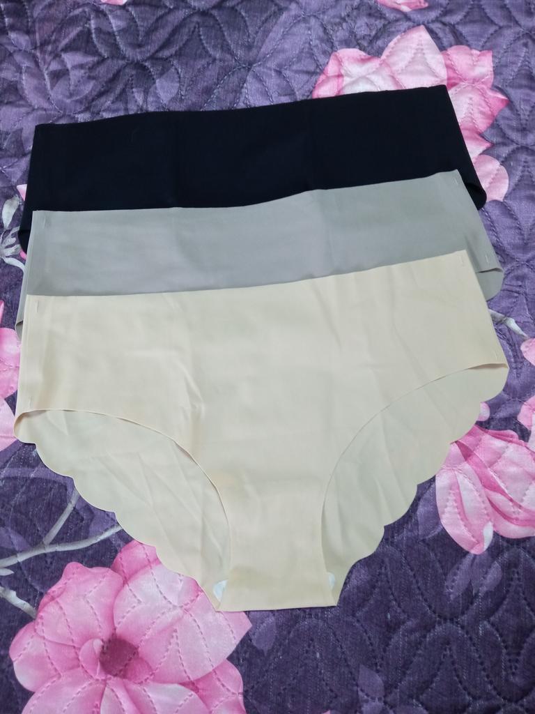 Бесшовные трусики, три штуки, качество неплохое, правда, по размерной сетке ориентироваться не стоит, лучше по отзывам.На мои ОТ 79, ОБ 96 я заказывала XL. Не могу сказать, что малы- они тянутся очень хорошо.Но посадка для меня слишком низкая, и, т.к.резиночки нет, есть ощущение, что они сползают, особенно, если есть животик.В целом неплохие, но не на любую фигуру.Спасибо.
