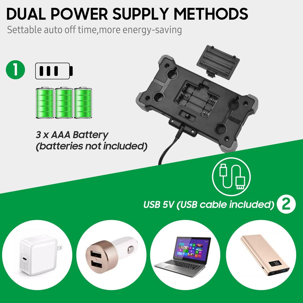 Два способа питания: USB 5V или питание от батареи (батареи не включены).