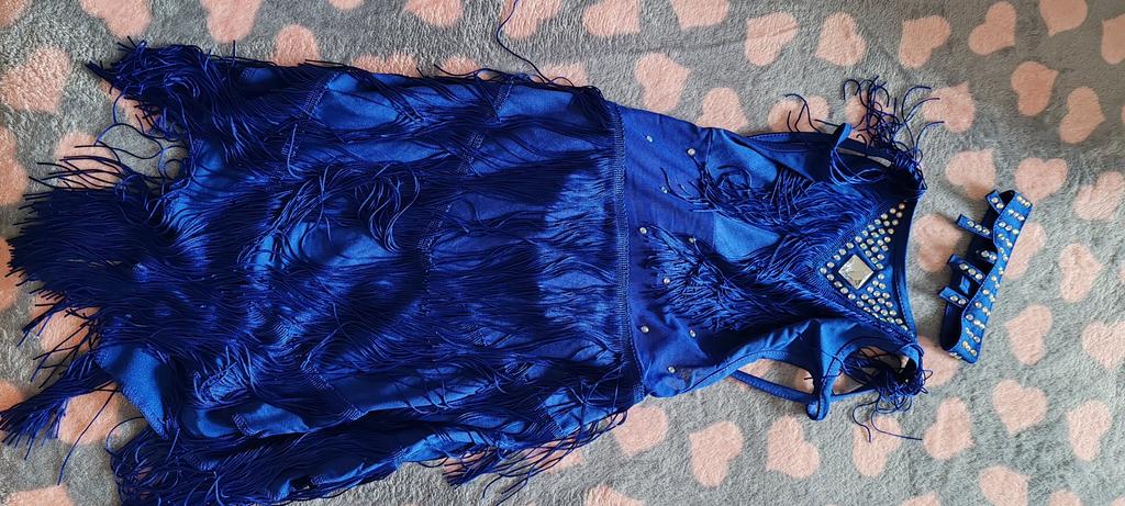Розовый костюм, размер 160 оказался. Но он по качеству не плохой. Была добавлена заколка.