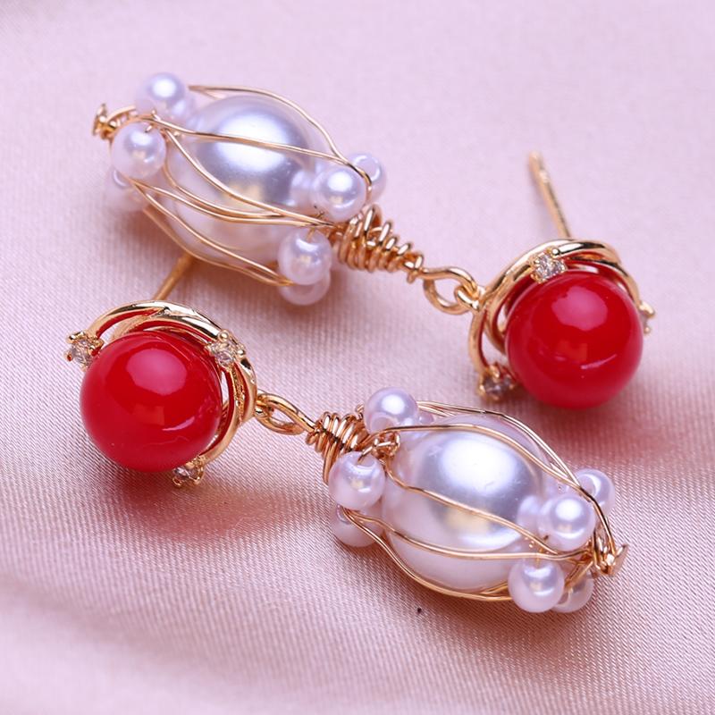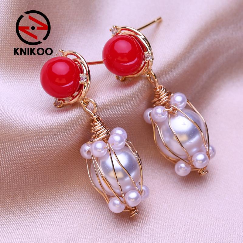 KNIKOO Геометрические серьги для женщин, модные серьги с цветочным жемчугом, ювелирные изделия для свадебной вечеринки, подарки, серьги