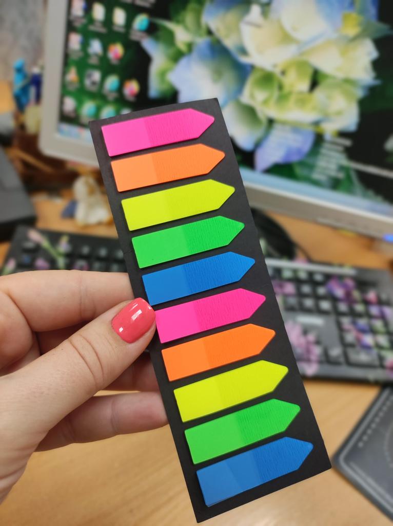 Наклейки - закладки цветные самоклеящейся. Приходят разноцветные, яркие. Продавцом заявлено 200 шт. Не знаю, не проверяла 😁 Купила за 84 рубля, цена просто 🔥 Мне нужны такие закладки по работе, покупаю часто в канцелярском магазине, цена там в разы дороже. Покупкой довольна 🥰 взяла так сказать на пробу, буду покупать ещё 😉👌 Рекомендую 🤗❤️