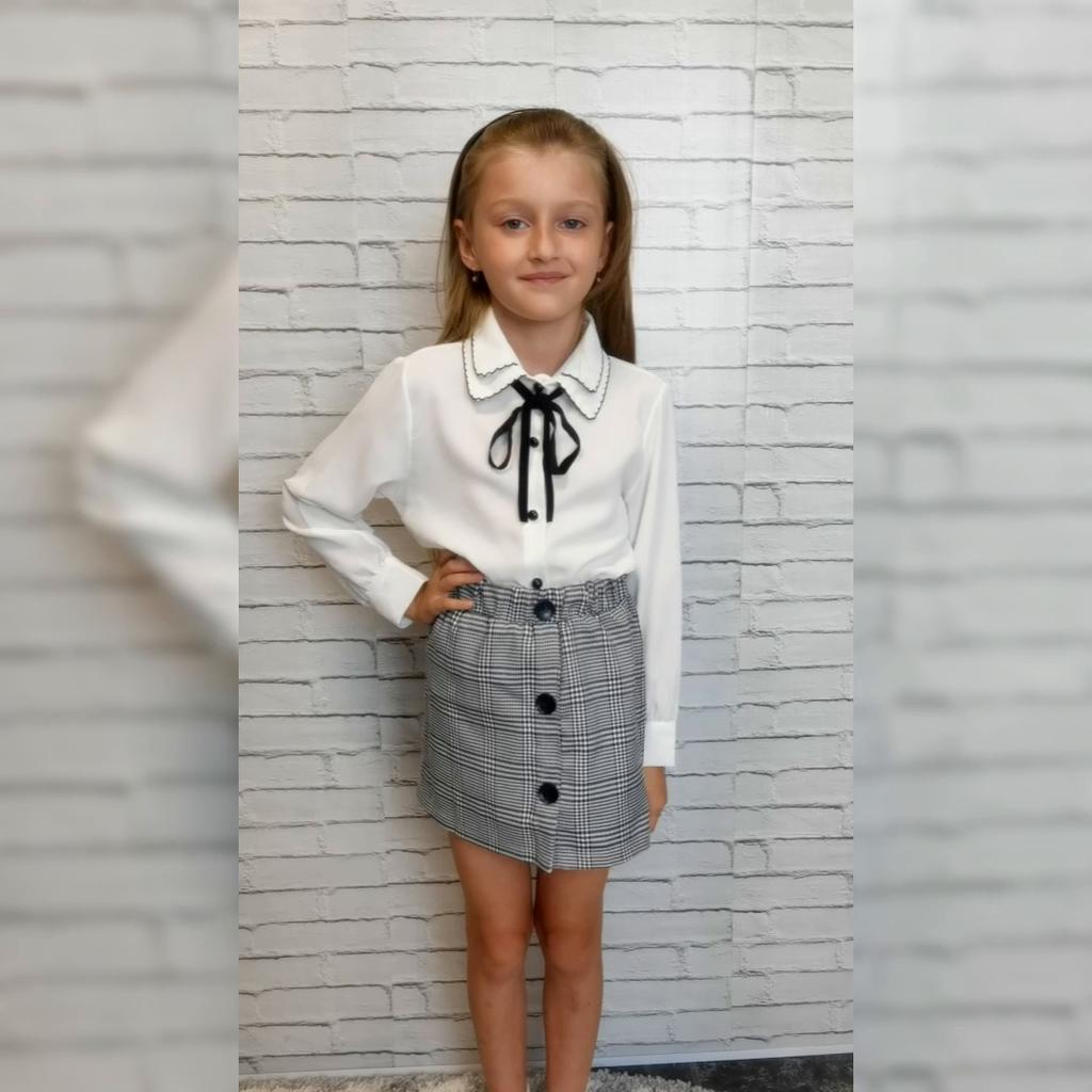 Хорошая блузка на девочку, отличный вариант для школы, хоть на торжественный, хоть на будничный день! Внешний вид полностью соответствует ожиданиям! Размер брала 12, на этикетке указан рост 150. Чуть-чуть маломерит. Думаю идеально будет на рост 140-145. Рост ребёнка 133, есть приличный запас, к сентябрю будет уже лучше, плюс хотелось бы ещё год поносить. Так что думаю с размером не ошиблись! Есть ещё на один размер больше. Качество хорошее, есть 2 пуговицы про запас! Ткань ПЭ, похожа на плотный шифон, смотрится нормально, да и на ощупь тоже. Интересный двойной воротник. Вещь смотрится отлично, в классическом стиле. Спасибо продавцу. Качество пошива в принципе хорошее, единственное есть немного ниточек, в отверстиях под пуговицы с изнаночной стороны, не очень хорошо оверложены. Но для меня не критично.