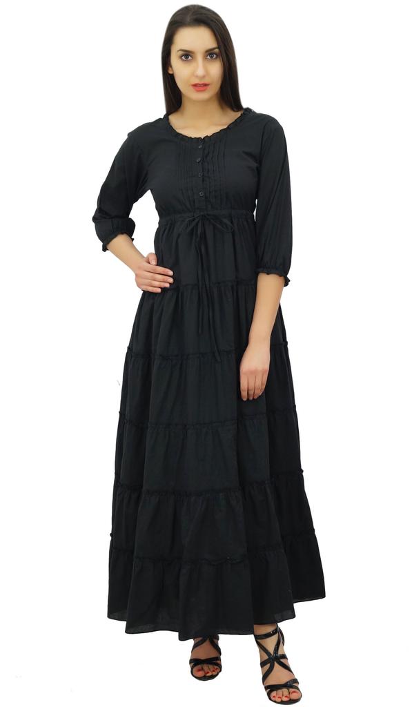 Bimba Женское летнее хлопковое платье макси с рукавом 3/4 и кулиской на талии