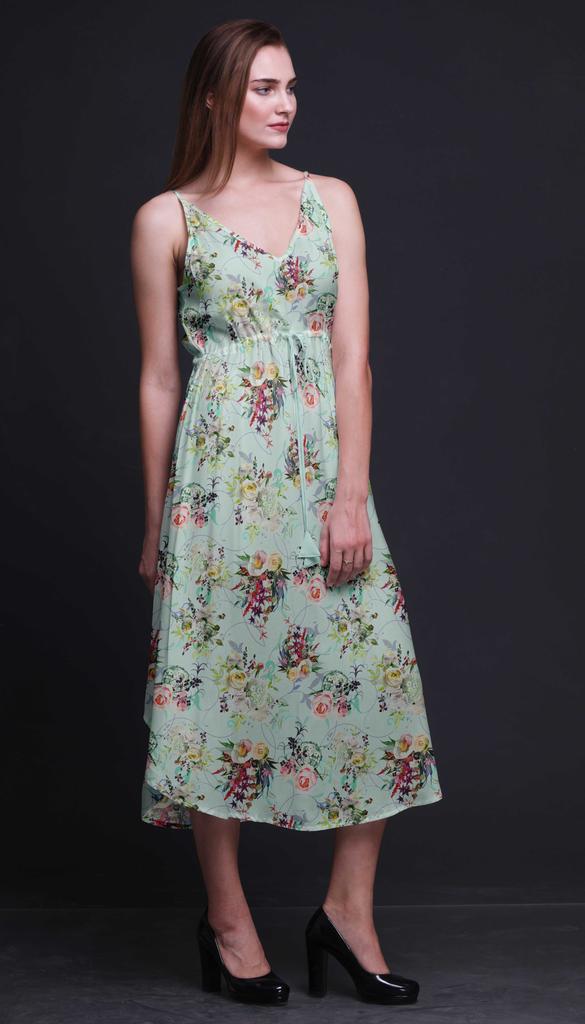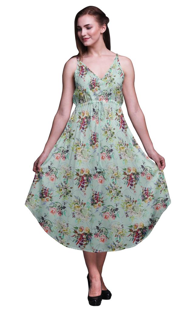 Bimba Цветочный принт Женское миди пляжное платье на бретелях Летняя курортная одежда-Large