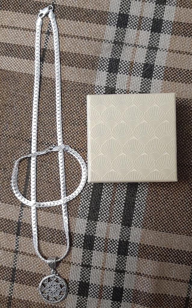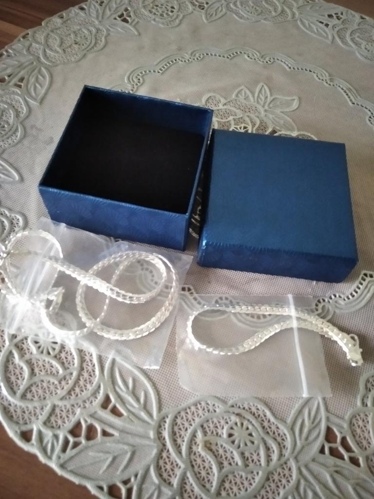 Восторг! Смотрится действительно дорого-богато! Заказала цепочку папе на ДР. А то мальчик уже давно дорос до драгметаллов, а всё не сподобился прикупить. Ну, штош, доча подарит) Не уверена, конечно, что это серебро. Время покажет и носка. Браслет классный. На мужскую руку или полненькую женскую. Длина 20.2 см. С моих 14 см в обхвате точно свалится. Это подарок подруге на ДР. Коробчка красивая!!! Т.к. в одной посылке был не один заказ, пришло всего за месяц. Что касается цены... я взяла за 730₽. А уже на следующий этот же набор стоил 350₽!! Не расстерялась и ещё заказала) Цепь себе оставлю, а браслет найдётся, кому подарить. Друзей и праздников много😁