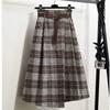 Осенне-зимняя женская юбка трапециевидной формы с высокой талией, винтажная клетчатая эластичная шерстяная клетчатая юбка на талии