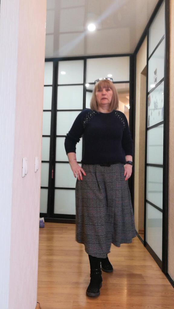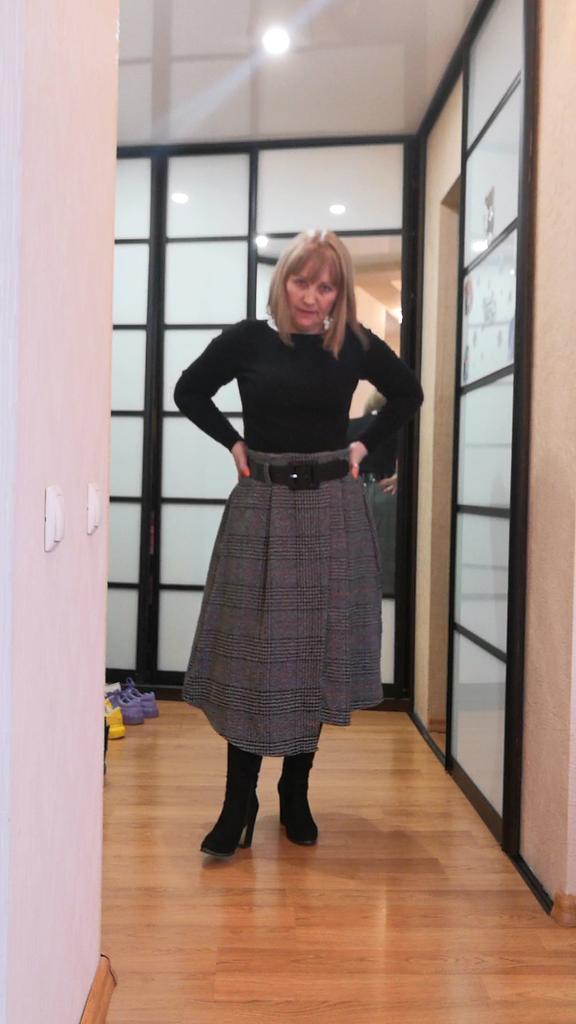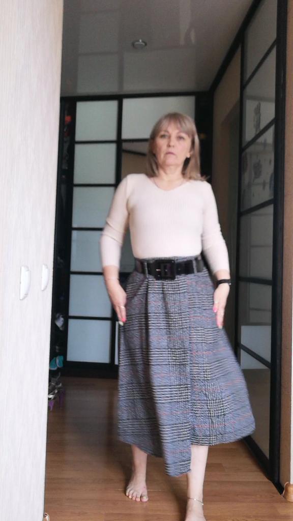 Хорошая юбка, но я начиталась отзывов и повелась, заказала больший размер😔 может, когда отпарю, она лучше смотреться будет🤔. Хотя, нет, не она, а я 😁. ✴️Наконец-то я нашла время на отзывы. Юбку слегонца погладила, нужно отпарить всё же. Да, с размером я погорячилась. На осень под пальто и с сапожками на каблуке будет очень хорошо. Пока примеряла, постоянно пыталась сунуть руки в карманы, а их нет😒 С юбкой шёл стрёмненький ремешок, я вдела свой, но сзади шлёвку на ощупь не нашла, а там есть одна. Юбку я не забраковала, сама виновата🤭