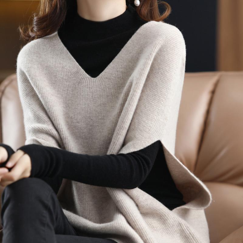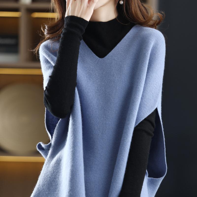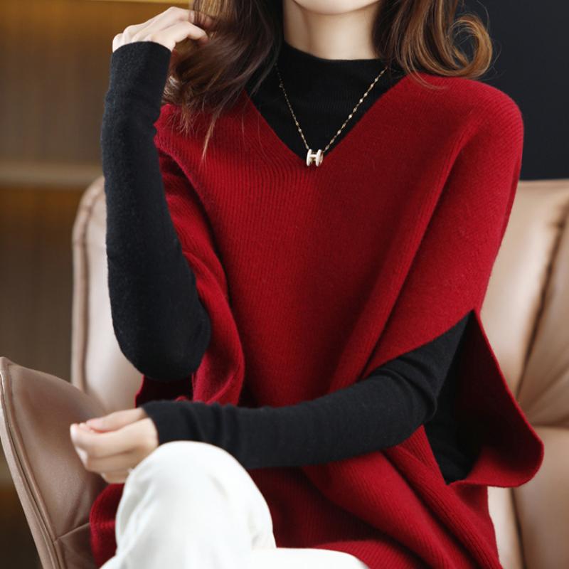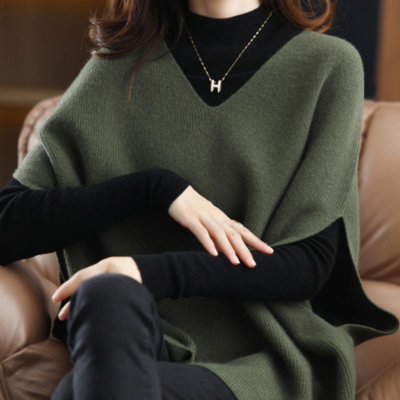 Вязаный жилет женский с v-образным вырезом и рукавами «летучая мышь», зимний белый винтажный элегантный классический офисный женский мешковатый жилет без рукавов большого размера