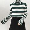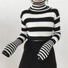 Свитер женский, водолазка, трикотаж, черно-белый полосатый пуловер, корейский тонкий топ, модный свитер, осенне-зимняя мода